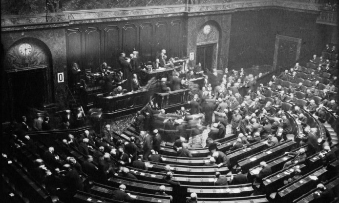 img: Versailles : la salle du Sénat pendant le vote, National Library of France, Public Domain.
